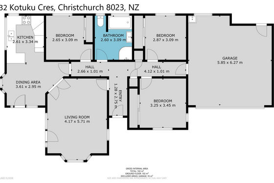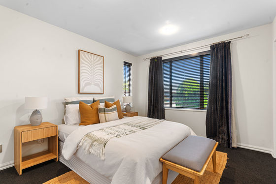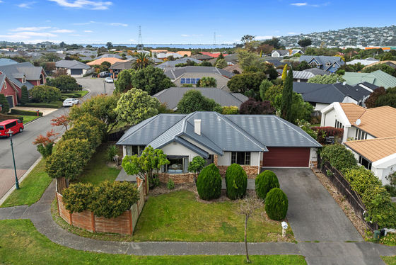 Set on a corner site of 450sqm, the house faces North and West, sheltered from our pesky easterly. Open plan kitchen and dining is light and airy with French doors to the North out to a sunny patio. The roomy living area has a bay window and French doors as well, flooding the room with sun and light. Nicely presented and very tidy, this is a most comfortable home with generous double garaging and ample parking for extra cars in the driveway.