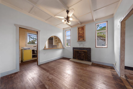 For the first time in over 50 years, this 1920s classic bungalow is available for sale, featuring traditional beam ceilings, an open fireplace, and potentially glowing native floors.